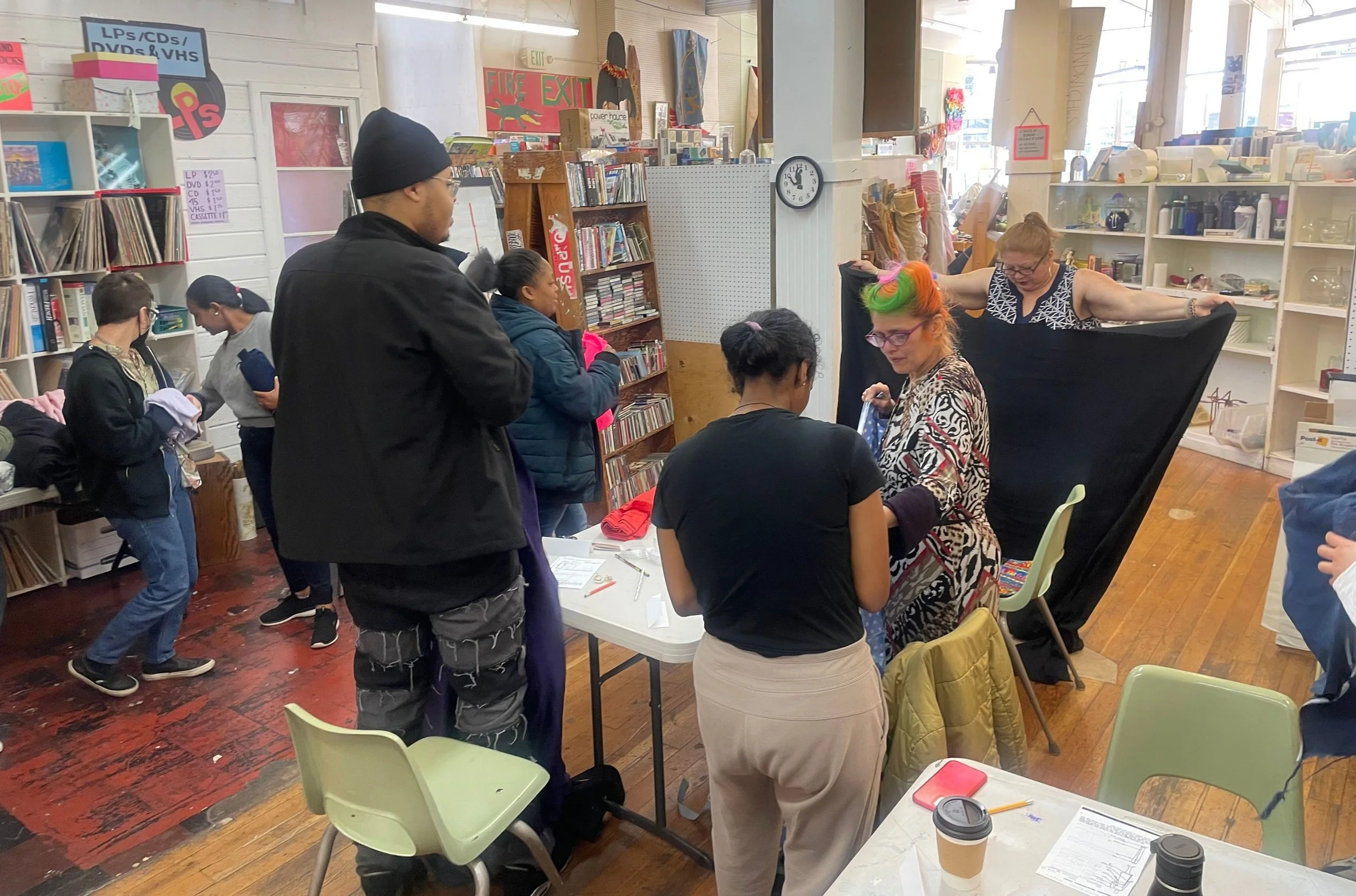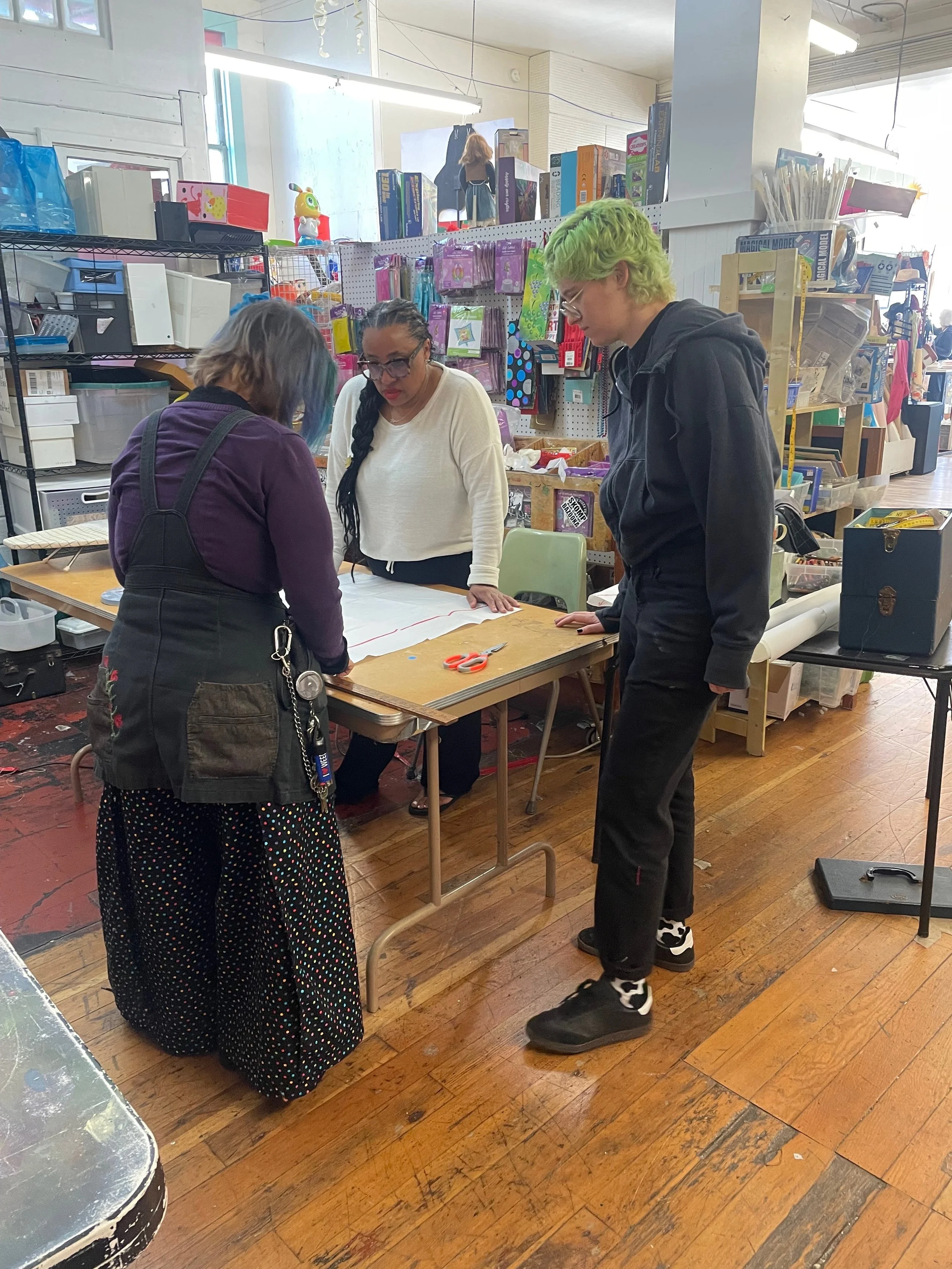 Sewn Together is our community sewing program for youth, teens, and adults that weaves creativity, sustainability, and self-expression into every stitch. Participants learn foundational sewing skills while transforming upcycled materials into functional, stylish pieces, gaining confidence, collaboration, and an understanding of the environmental impact of fashion.
