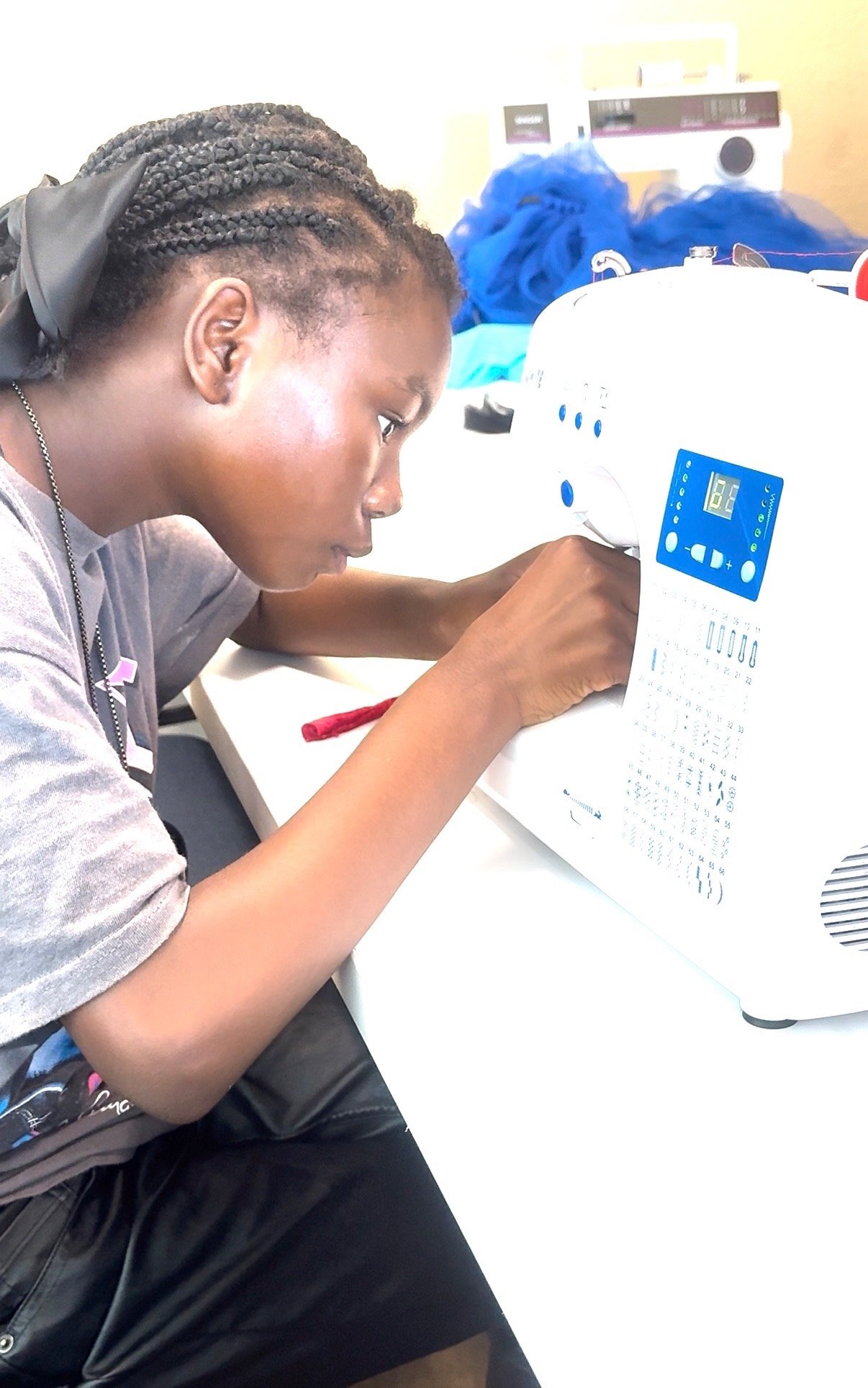 We offer free sustainable sewing classes to empower our community with creativity, practical skills, and economic opportunities; while promoting environmental awareness through upcycling. By providing hands-on learning and free sewing machines, we help participants build confidence, express themselves, and explore sewing as a trade or source of income.